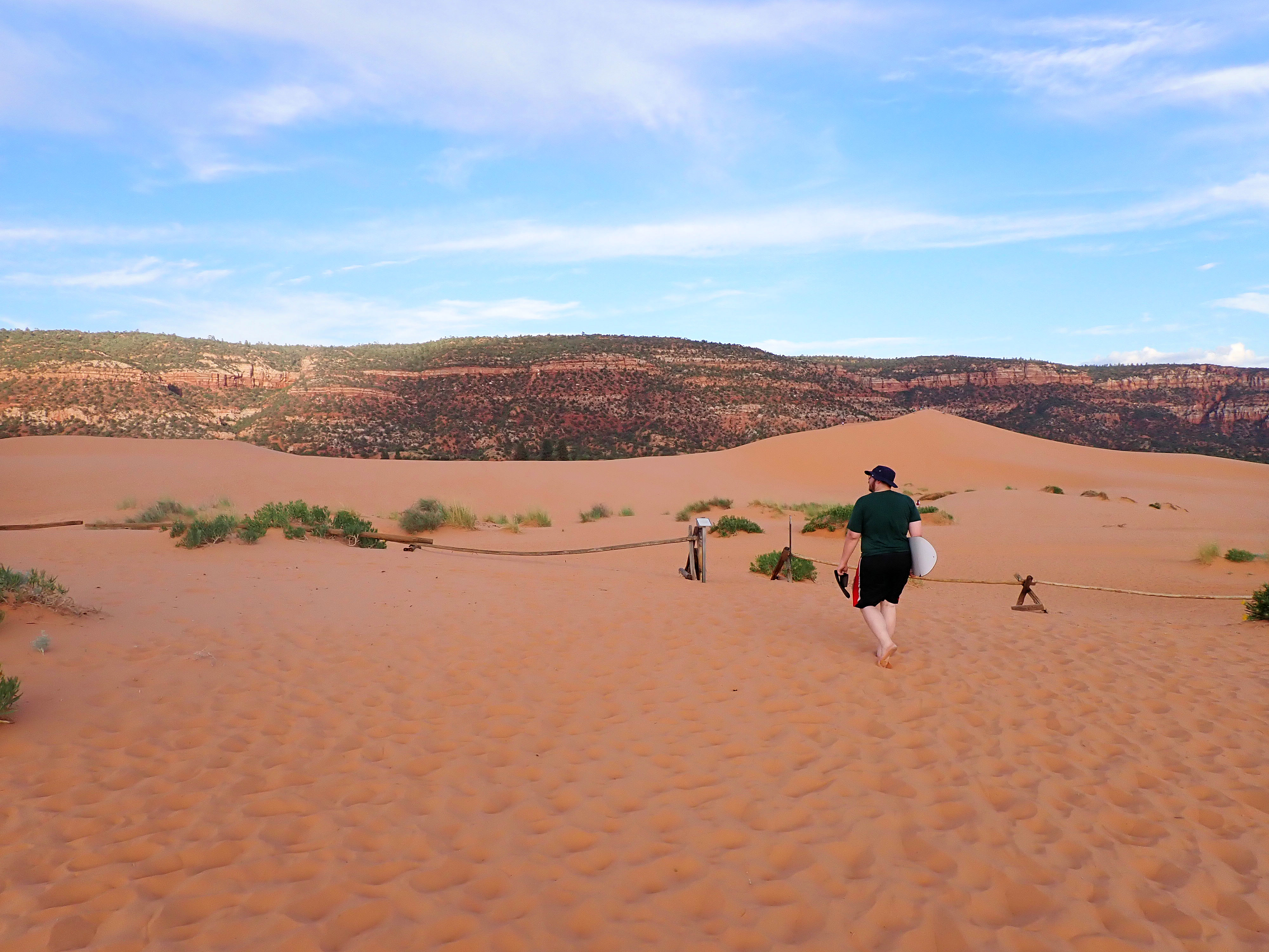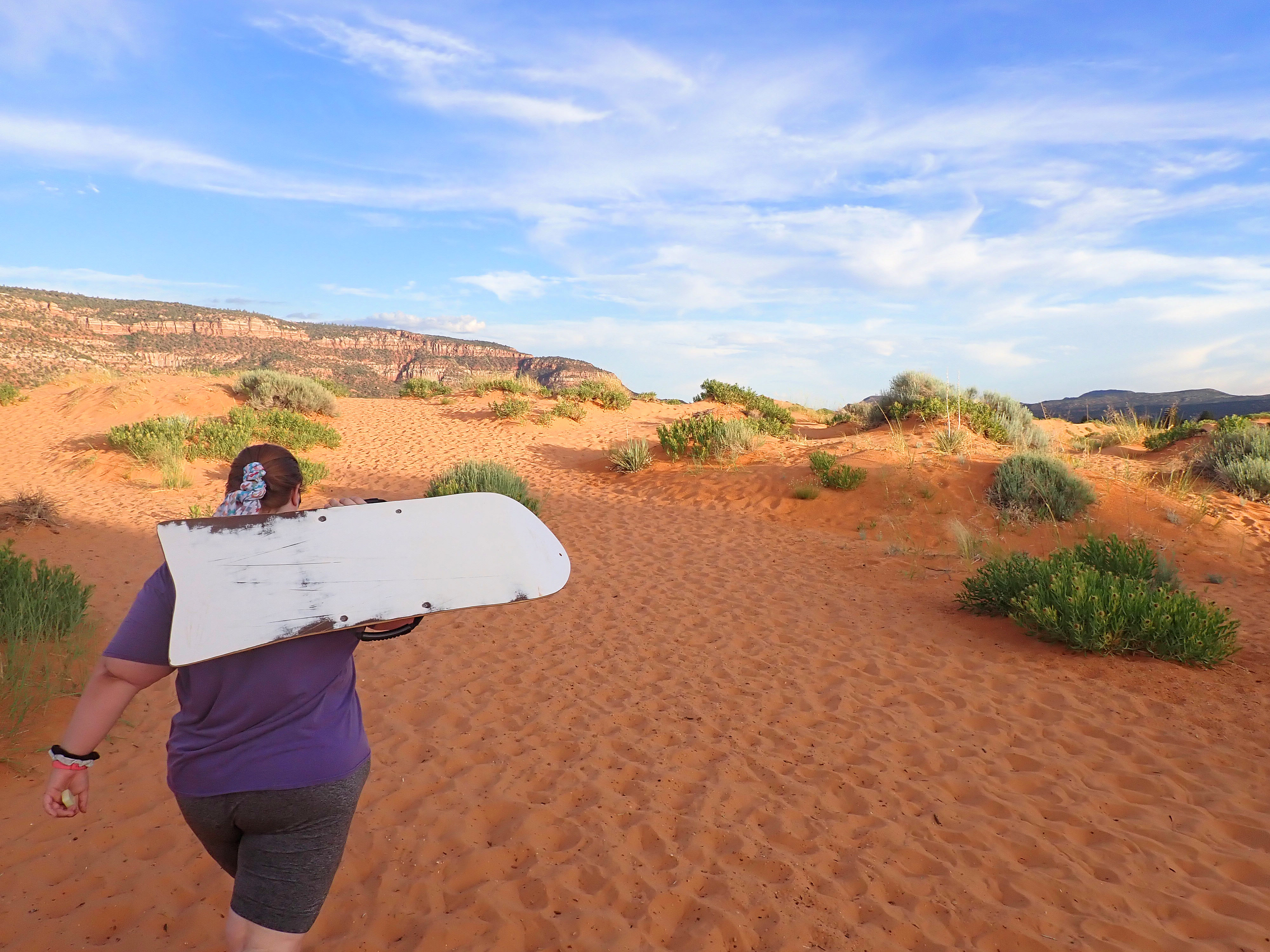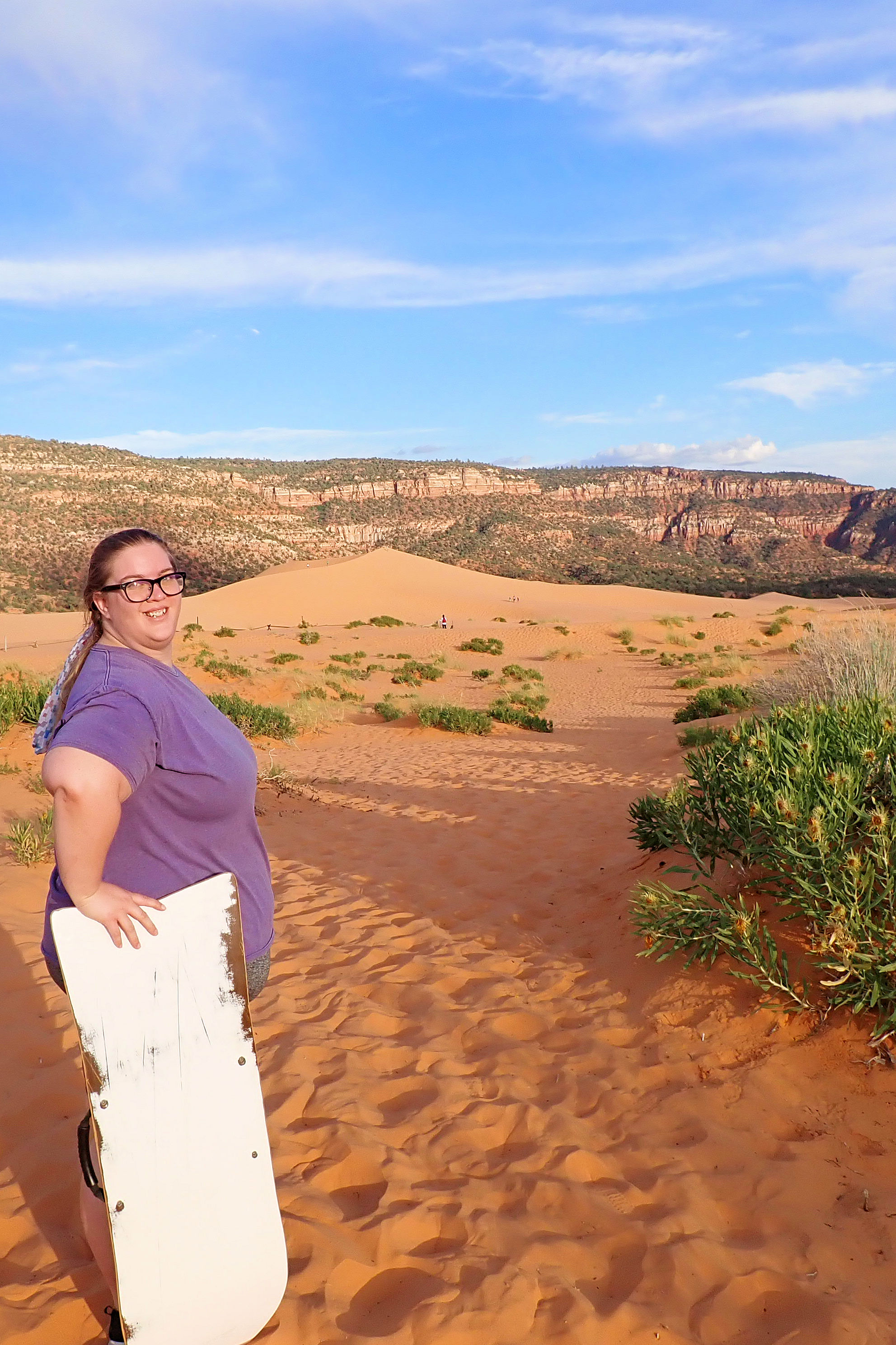 One of the only times my type A personality rears its head is in trip planning. I had a pretty thorough itinerary planned out with a binder and everything. Our first stop was the Coral Pink Sand Dunes. We made it just in time for the sun to set as we sled down the dunes.