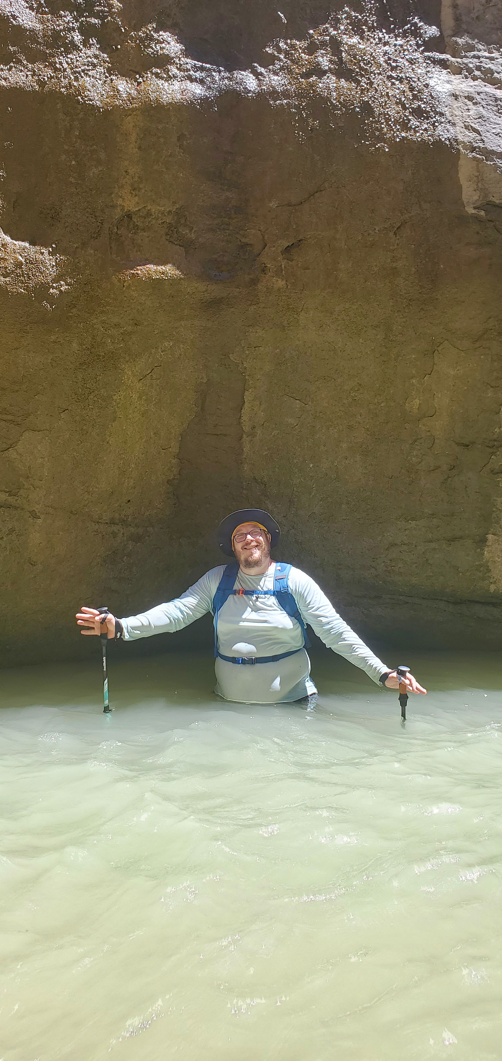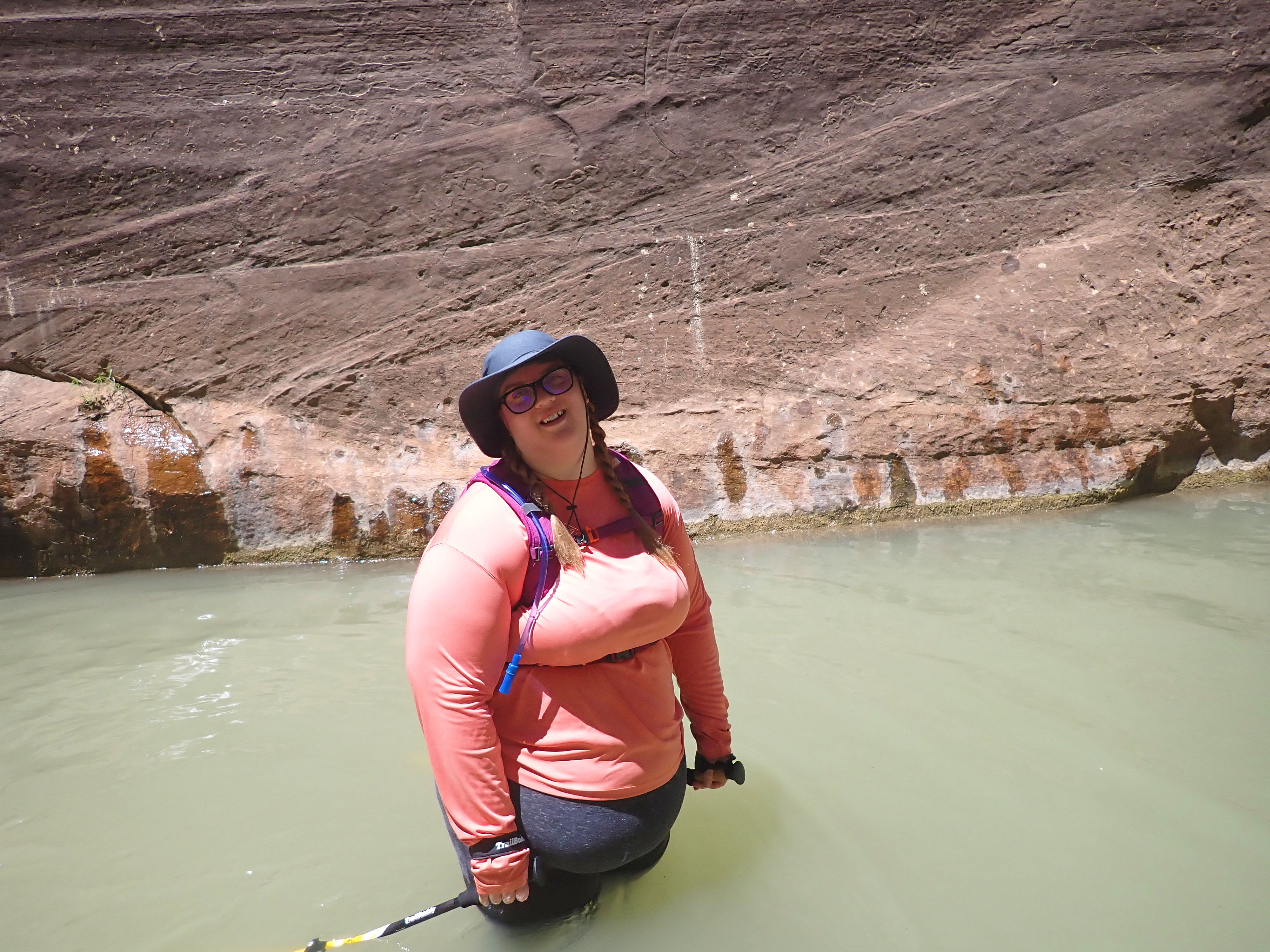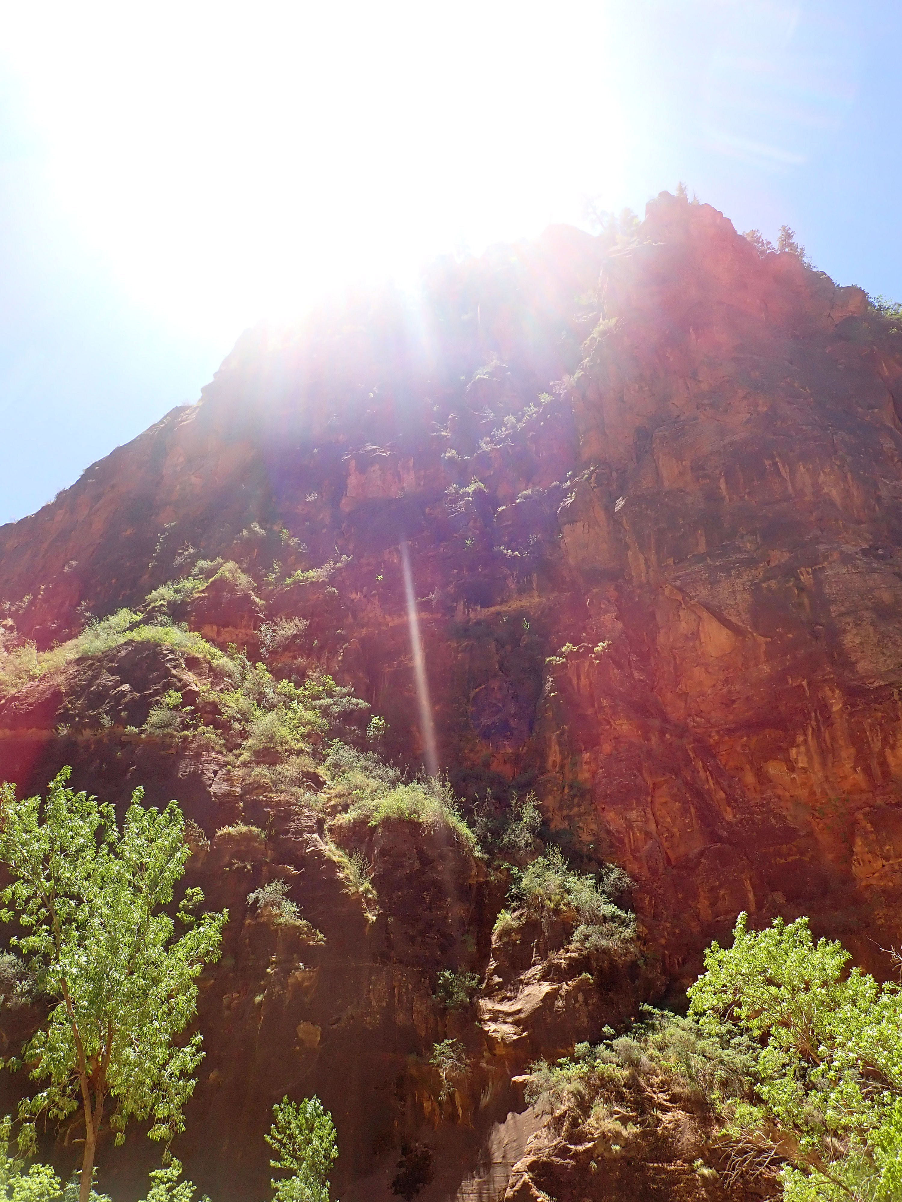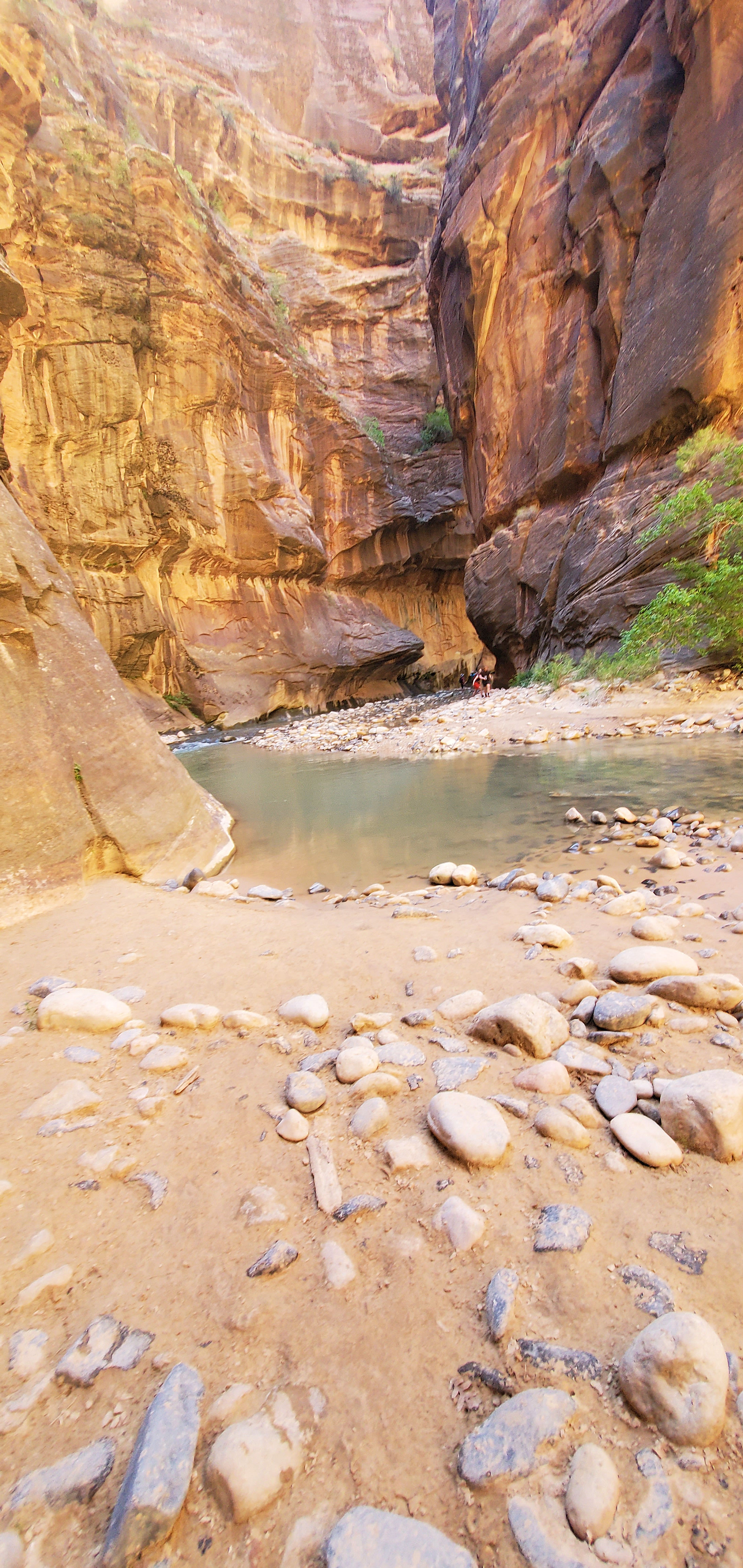 The water was deliciously cool after the mile in the sun getting down to it. We pulled out our trekking poles and off we went. Our plan was to just go as far as we were having fun, but I really wanted to make it to make it to the beginning of Wall Street. Pushing our way upstream was exhausting but we didn’t take many breaks besides to take pictures–which we actually did a lot.