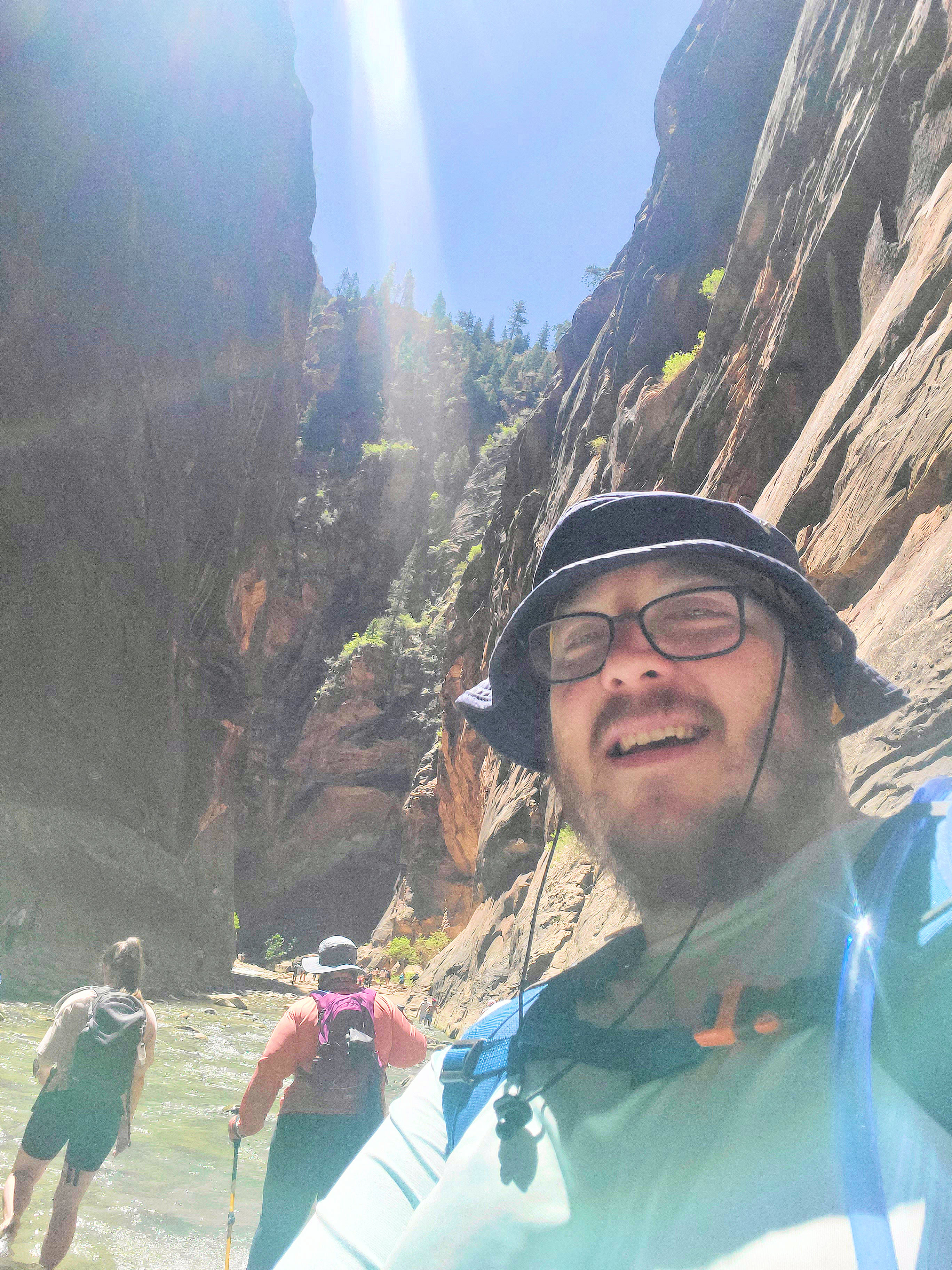 I was excited to use our Annual Parks Pass for the first time as we walked through the entrance to the park and over to the park’s shuttle system, admiring the already stunning views. Coming from Tucson, we were no strangers to mountains and the beautiful colors they can present with, but the deep reds of Zion were a wonder to behold. We didn’t have to wait long to hop on a shuttle and head to the last stop, Temple of Sinawava, the start of Riverside Walk to reach The Narrows.