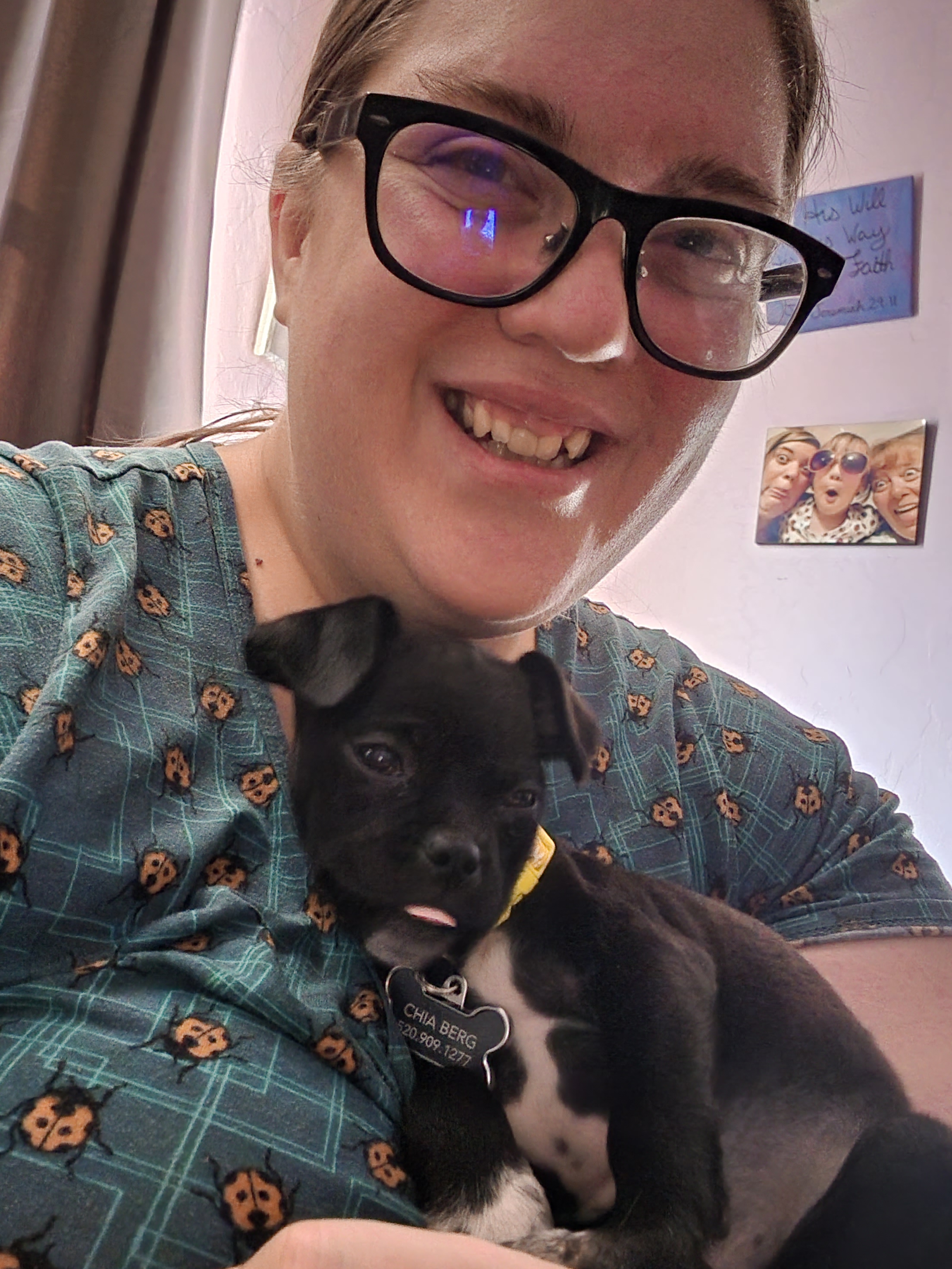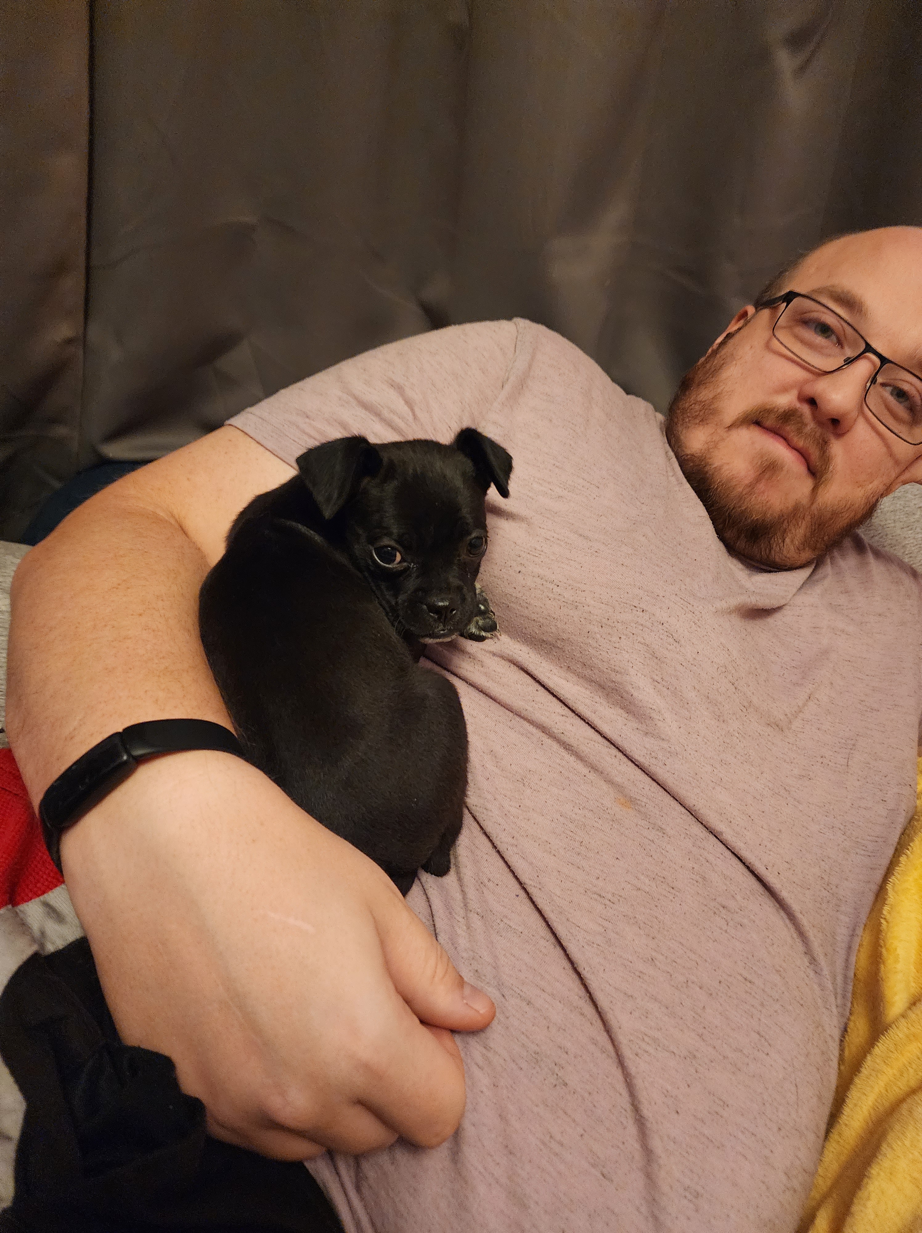 When we were in Alabama during our big trip in 2023, our friend’s mom had such a cute little pug puppy. She cuddled up in our arms while we played board games and went crazy during playtime. Thomas caught puppy fever…hard. As it got close to Christmas, I decided to look into pug puppies available in the area because I am a totally awesome wife. It was totally only for Thomas, I swear! I found a listing for Pug/English Bulldog mixed puppies and jumped on it. My favorite dog breed has always been English Bulldogs, so this seemed the perfect pairing for Thomas and me. We wanted a female puppy and there was only one female in the litter, so we didn’t have any choices between the puppies. She was so cute, though!