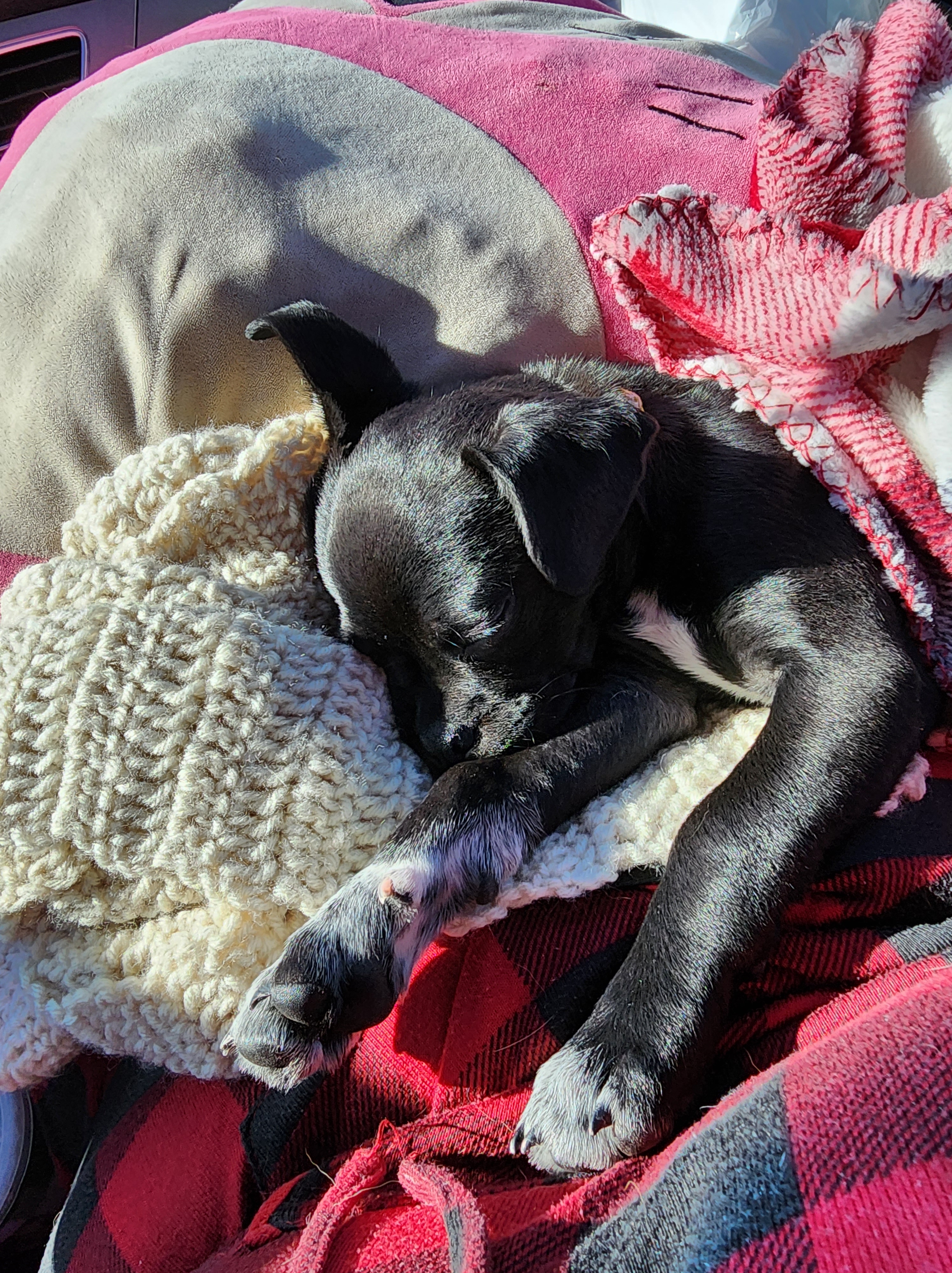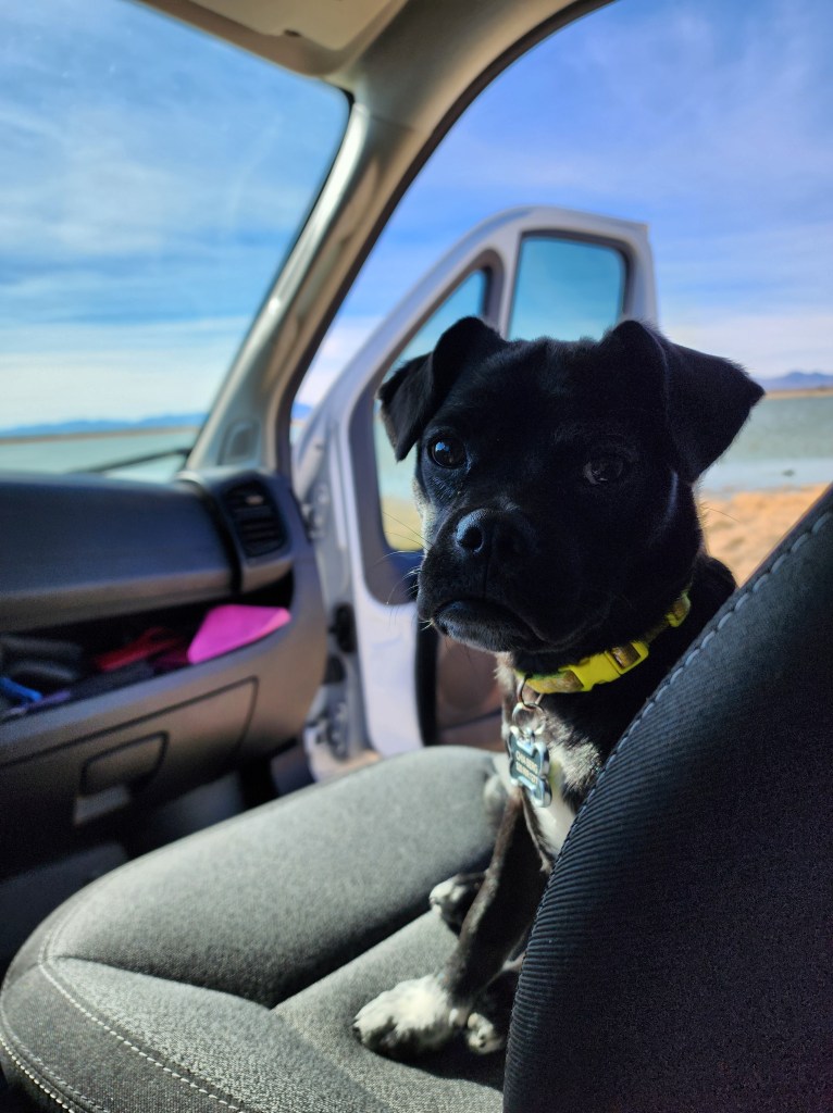 Chia has turned out to be a lot to handle. She is stubborn, absolutely bonkers, built like a tank, will eat anything and everything, and will open doors with levers if they are in her way. She can be hard to love, but love her we do. She seems like she will make a great van dog. She doesn’t get carsick, she pretty much just sleeps the whole ride anywhere, and she loves to explore the wilderness with us. Plus, she is just so darn cute!