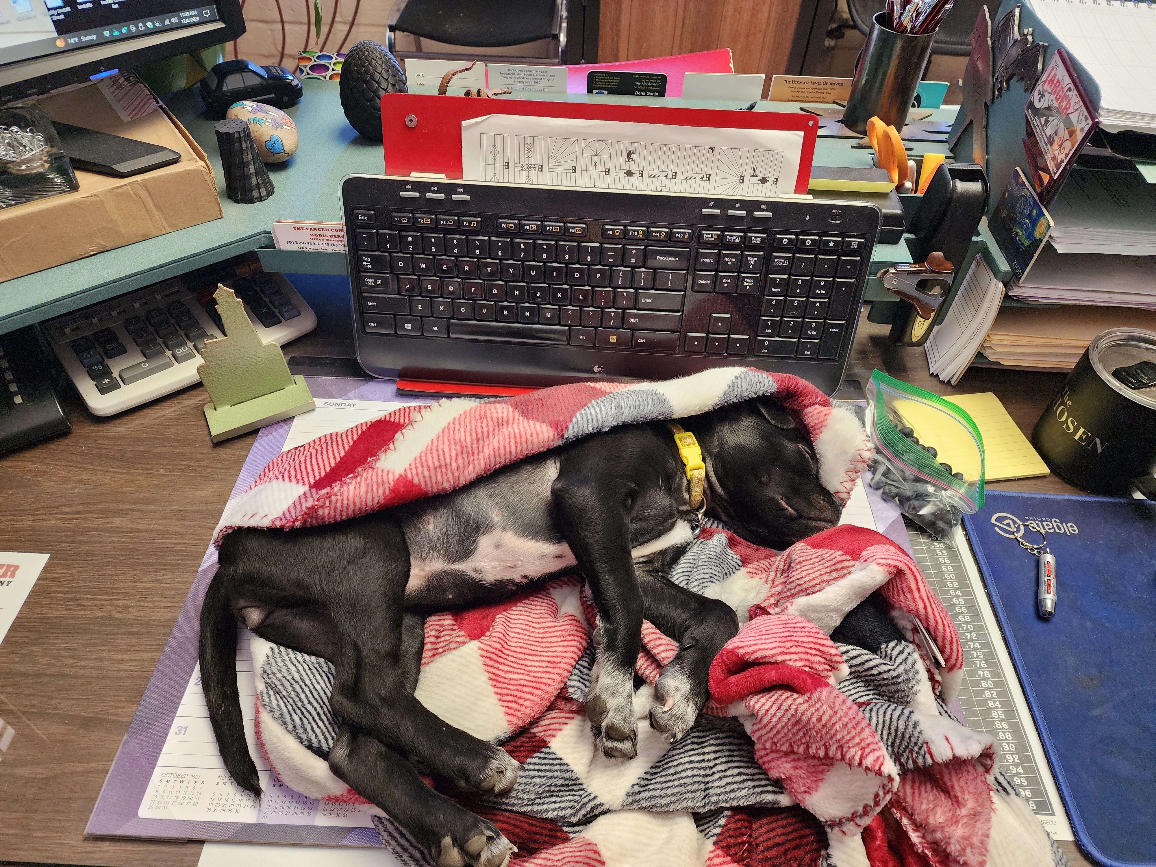 When we first got Chia, Thomas was still working a dual schedule where he worked from home half the week, but he had to go into the office the other half, so he wasn’t able to be home and watch Chia while I was at work. I have a totally awesome boss, though, who let me bring her in with me. Chia came to work with me for a few months until Thomas was able to start working fully remotely, meaning he would be home and able to keep an eye on her during the day.