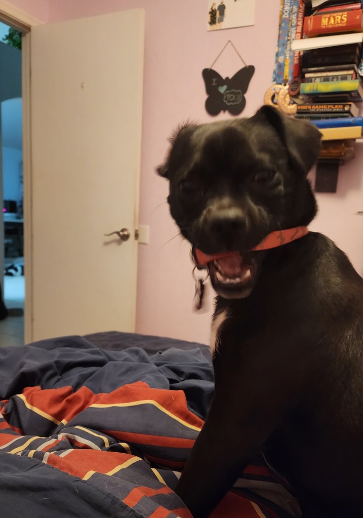 Chia instantly attached to me. It was definitely heart-warming, and I love finally having a dog that wants to snuggle, but it made things difficult when she didn’t warm up to anyone else. It took her a while to fully warm up to Thomas, even, let alone the rest of the household and family. She wasn’t barking or growling at him, but she didn’t fully relax when he held her. She still does this thing if other people hold her where she tenses up and straightens her legs to push herself away as if to try to get a better look at the person. Luckily, Chia seems to be better with dogs than with people. She is a rough player and a huge antagonizor, but she loves other dogs.