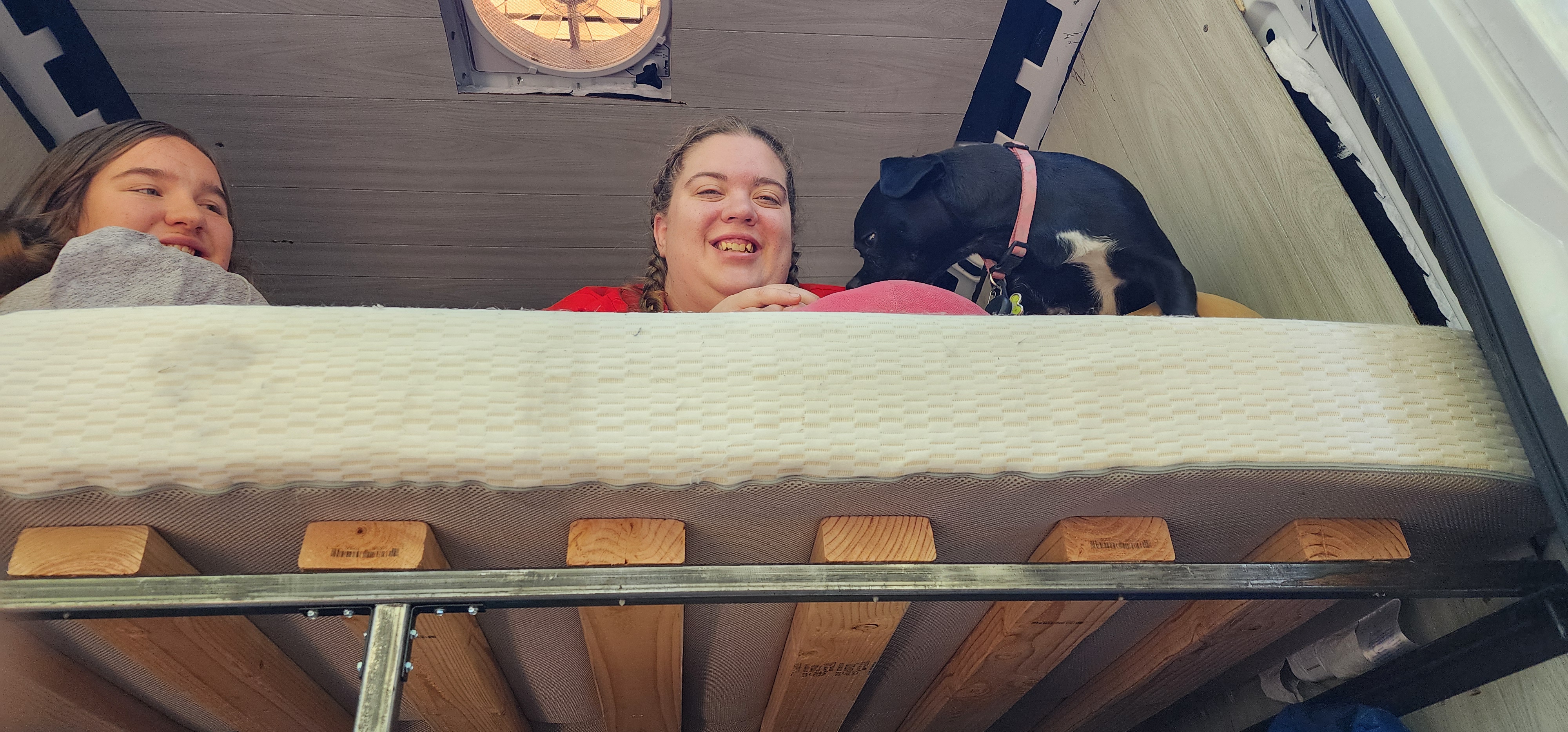 This project turned out to be a spectacular waste of time for us. It should have been obvious to us much sooner, but plywood alone was not strong enough to hold us Bergs. Moments after the photo above of Thomas sitting on the bed, it splintered and broke. We had wasted much time and materials pursuing this method, but at least we established the concept was possible.